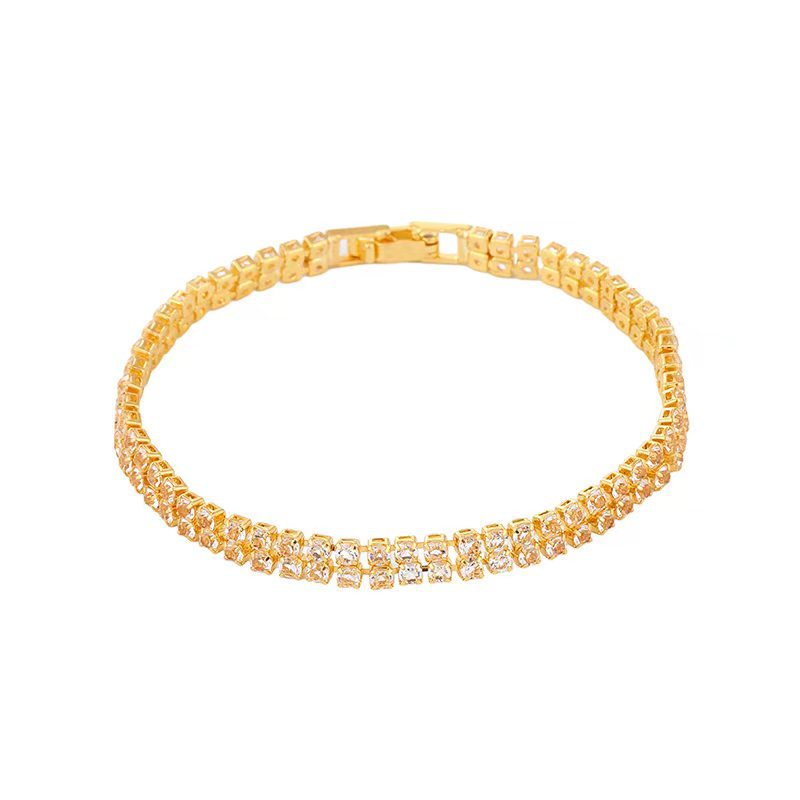 This glimmering 3-row tennis bracelet features dazzling Cubic Zirconia, bringing sparkle and style to any wrist. Enjoy your own little piece of luxury, without breaking the bank.